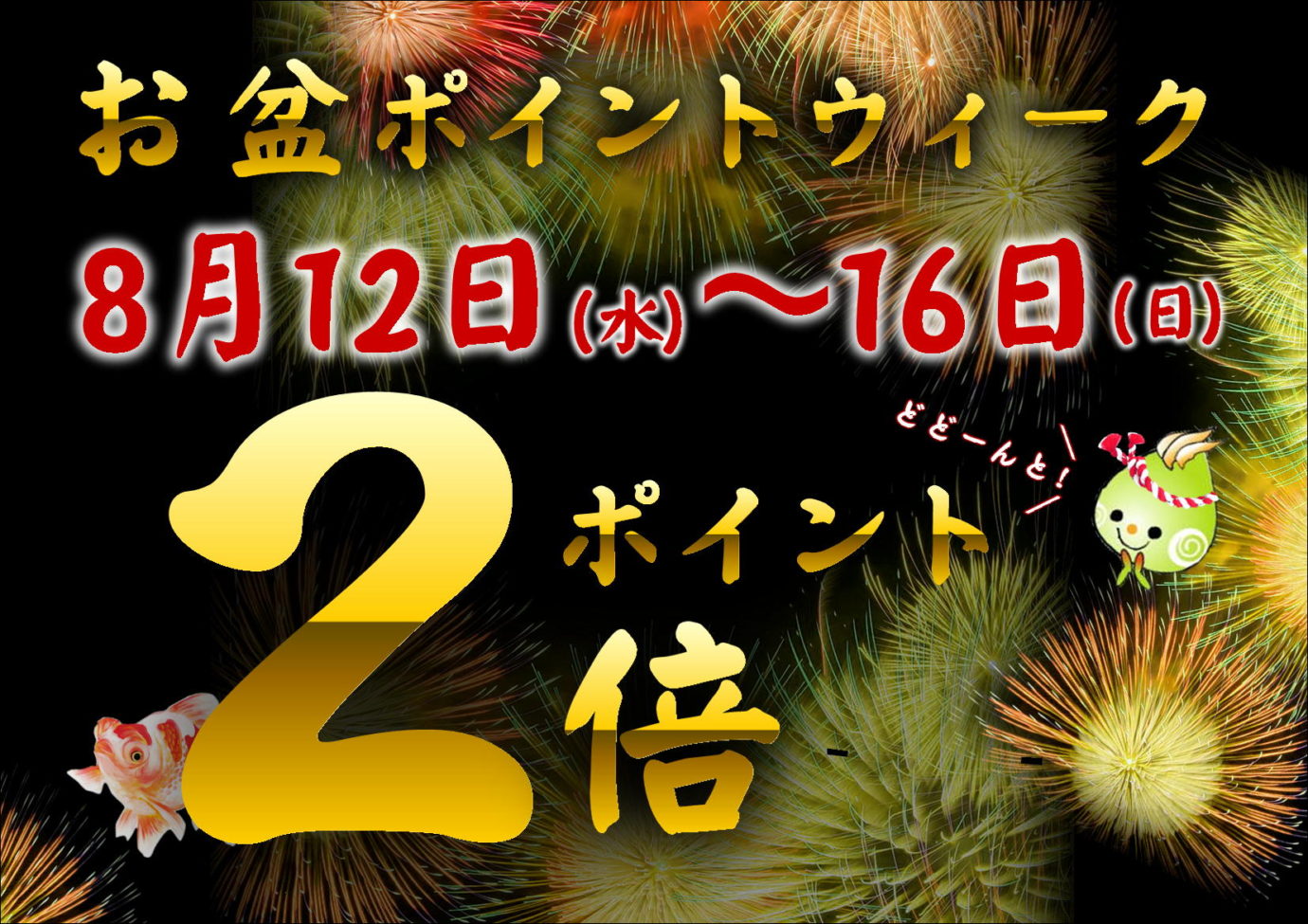 8月12日(水)~16日(日)は「お盆ポイントウィーク」でポイント2倍☆☆