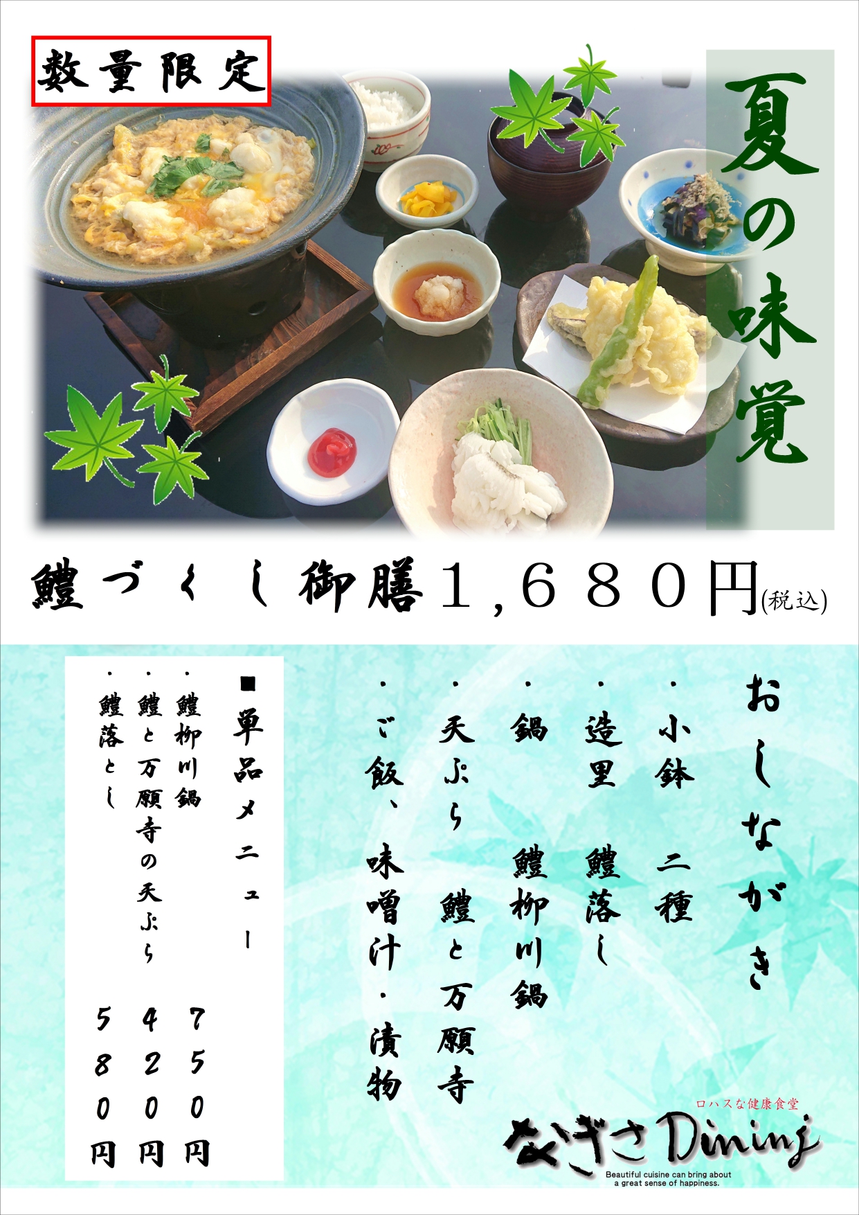 【なぎさダイニング 鱧づくしフェア開催中】