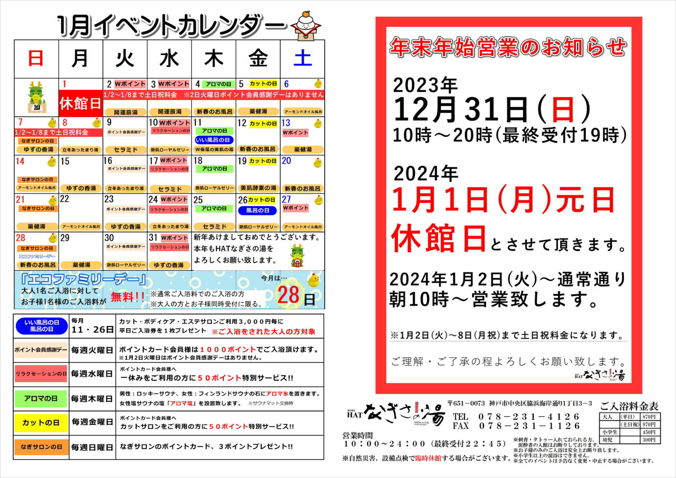 年末年始特別料金のおしらせ