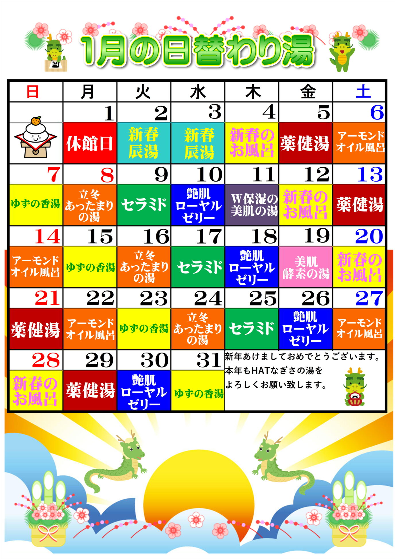 2024年1月あかすり定休日のおしらせ