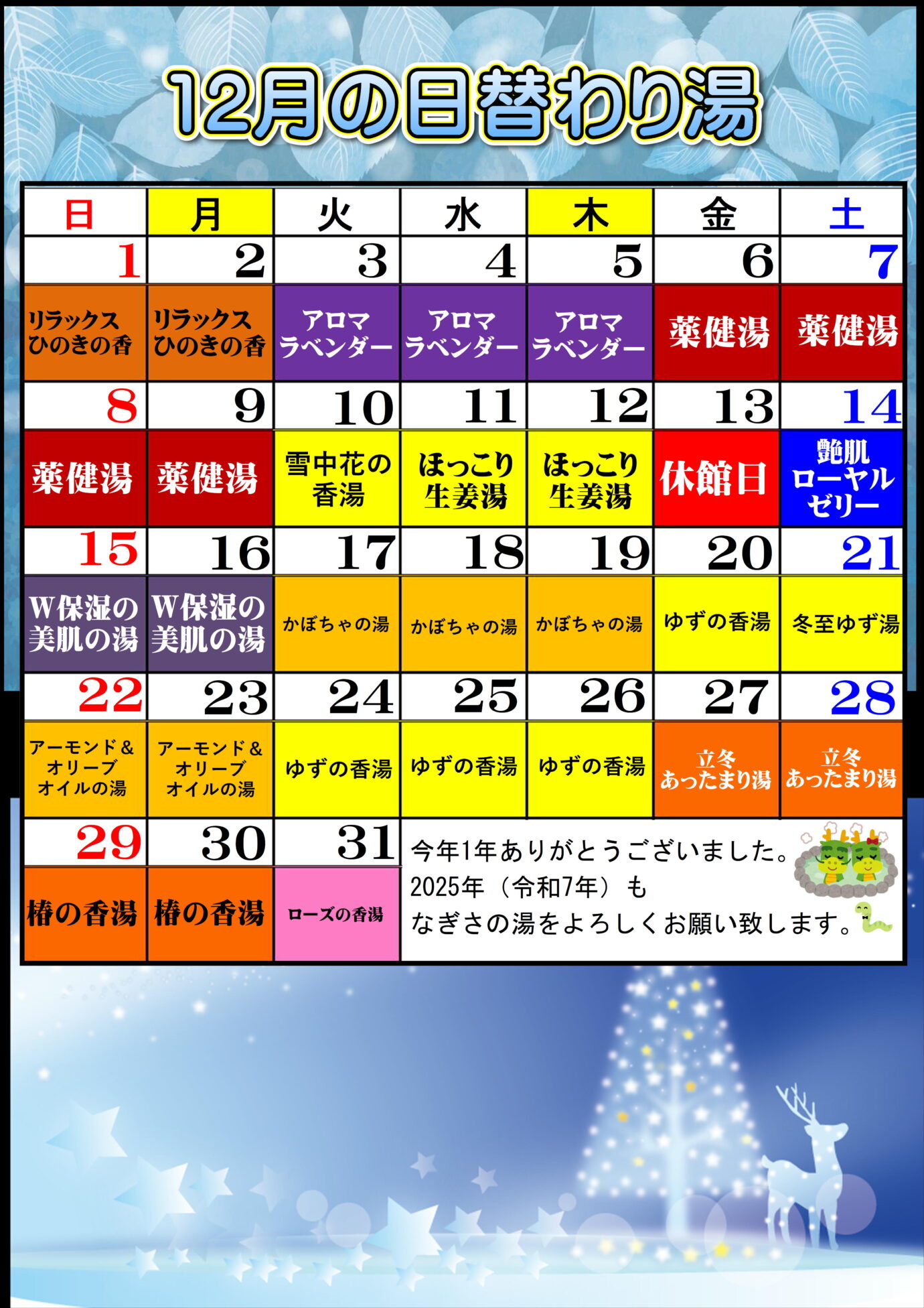 あかすり店休日のお知らせ(12月)