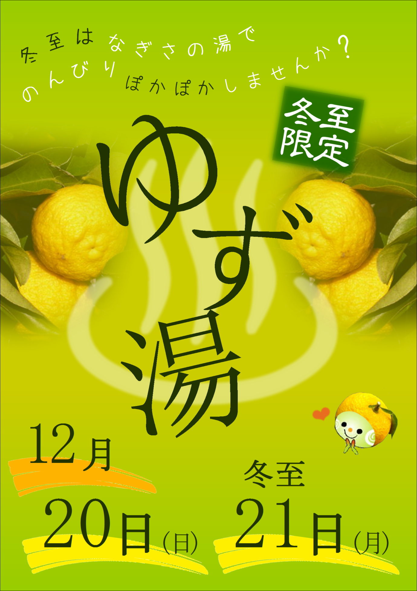 今年の冬至は21日(月)なので日曜日も含めて2日間実施!