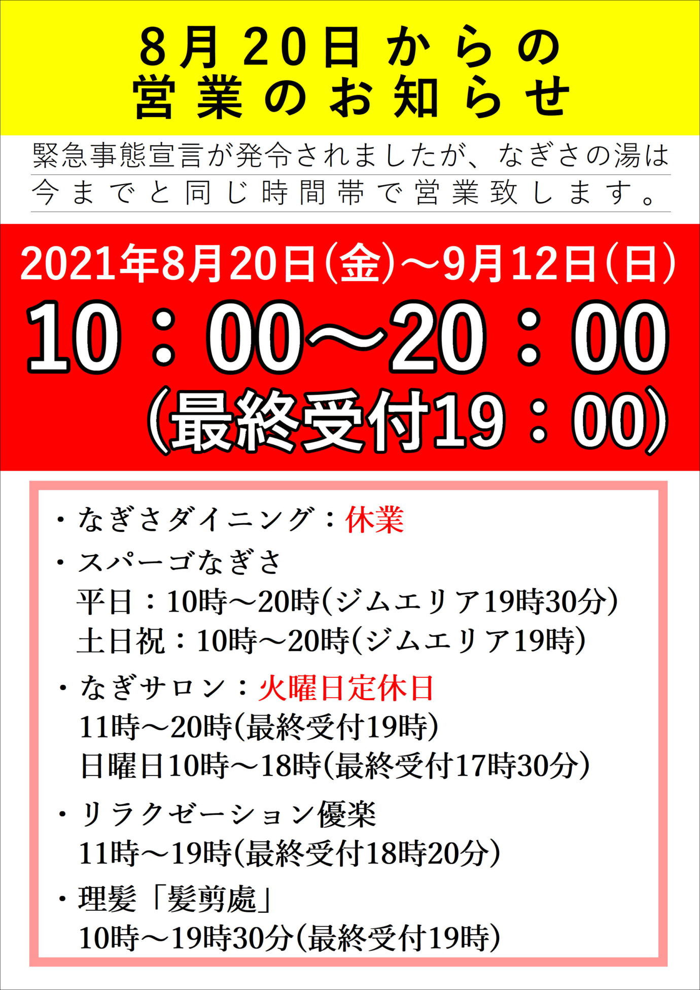 兵庫県から緊急事態宣言が発令されましたが、HATなぎさの湯は今まで通りの時間で営業致します。