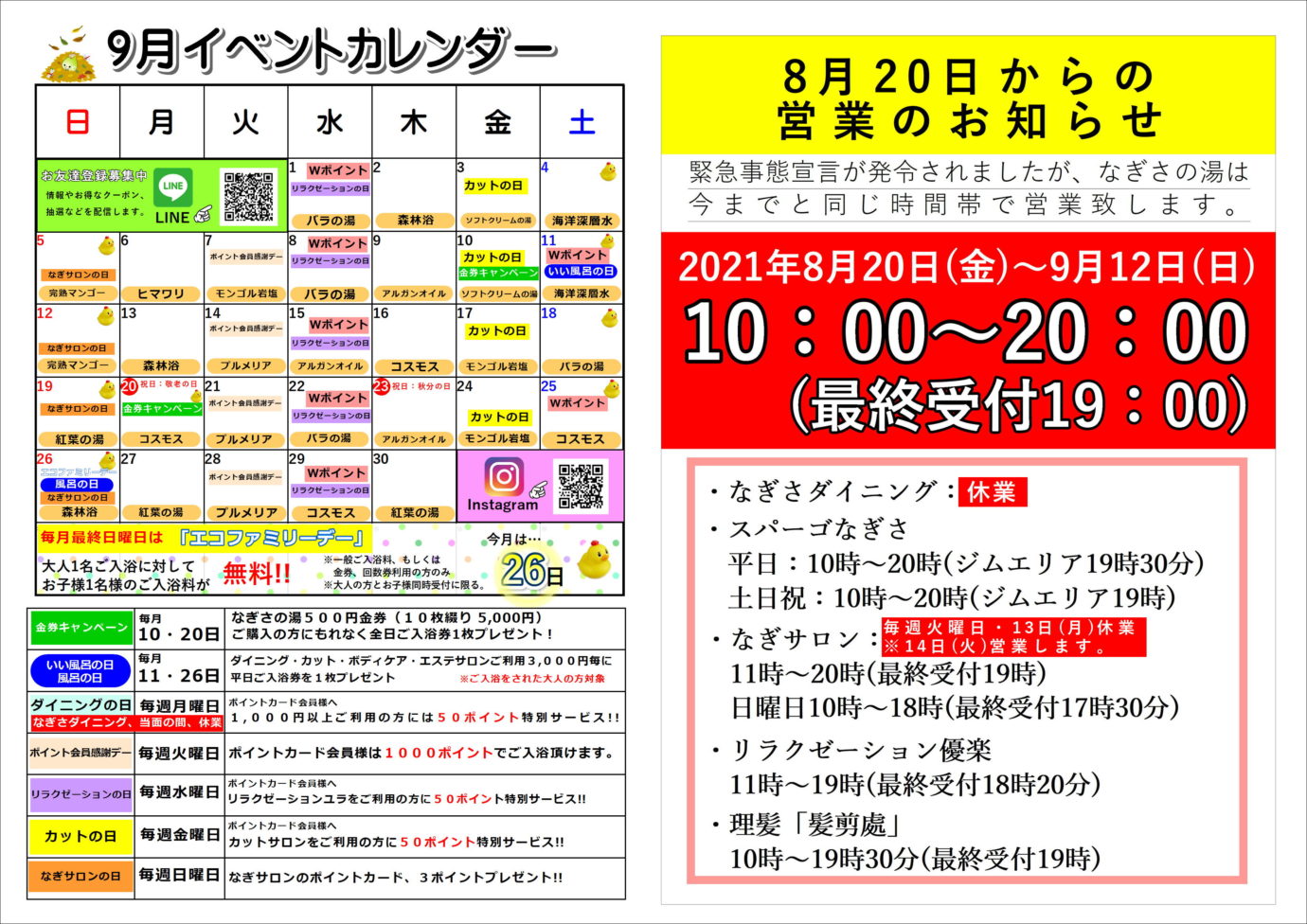 9月12日(日)まで緊急事態宣言に伴い、時間短縮で営業しております。
