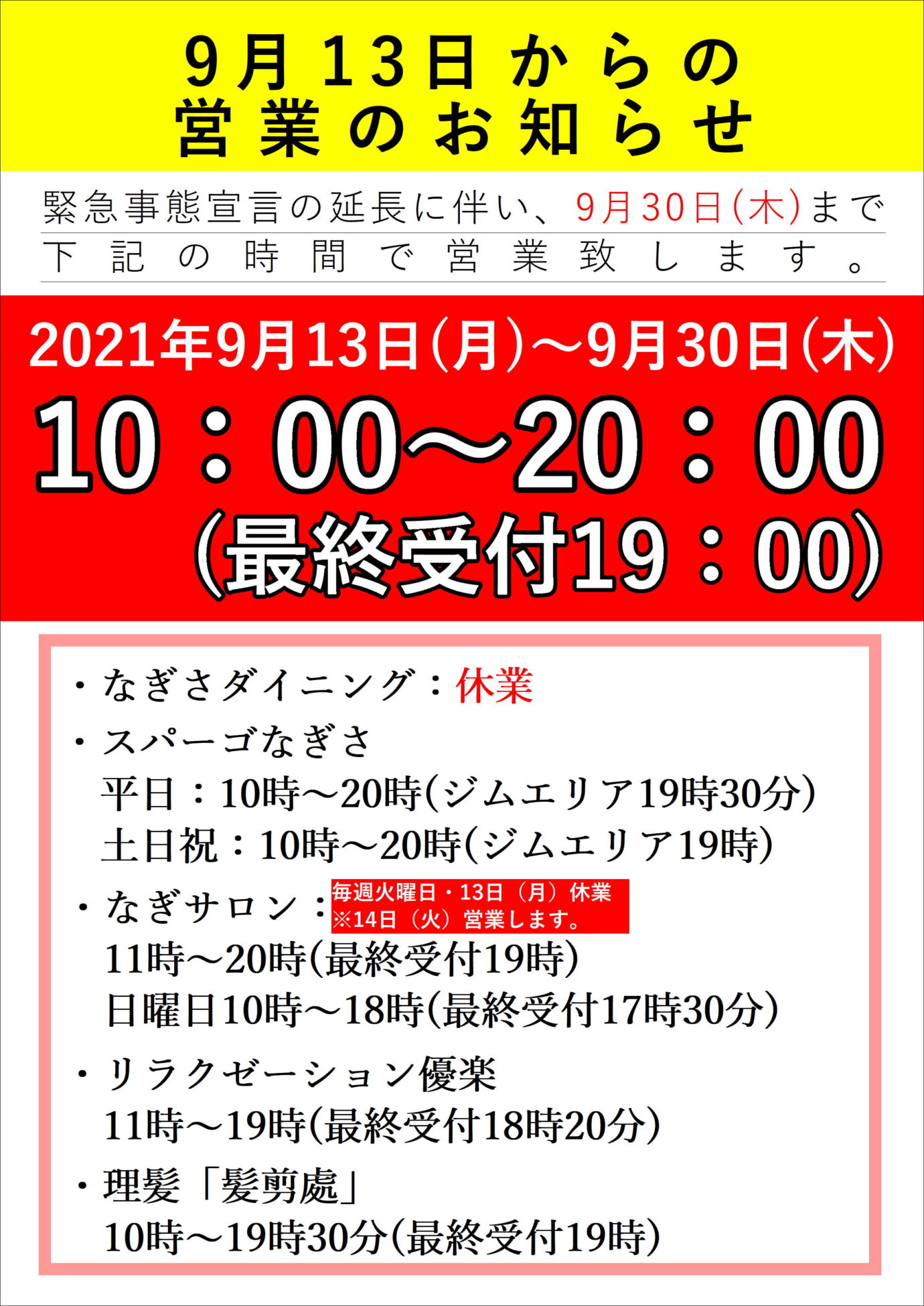 施設のお知らせ