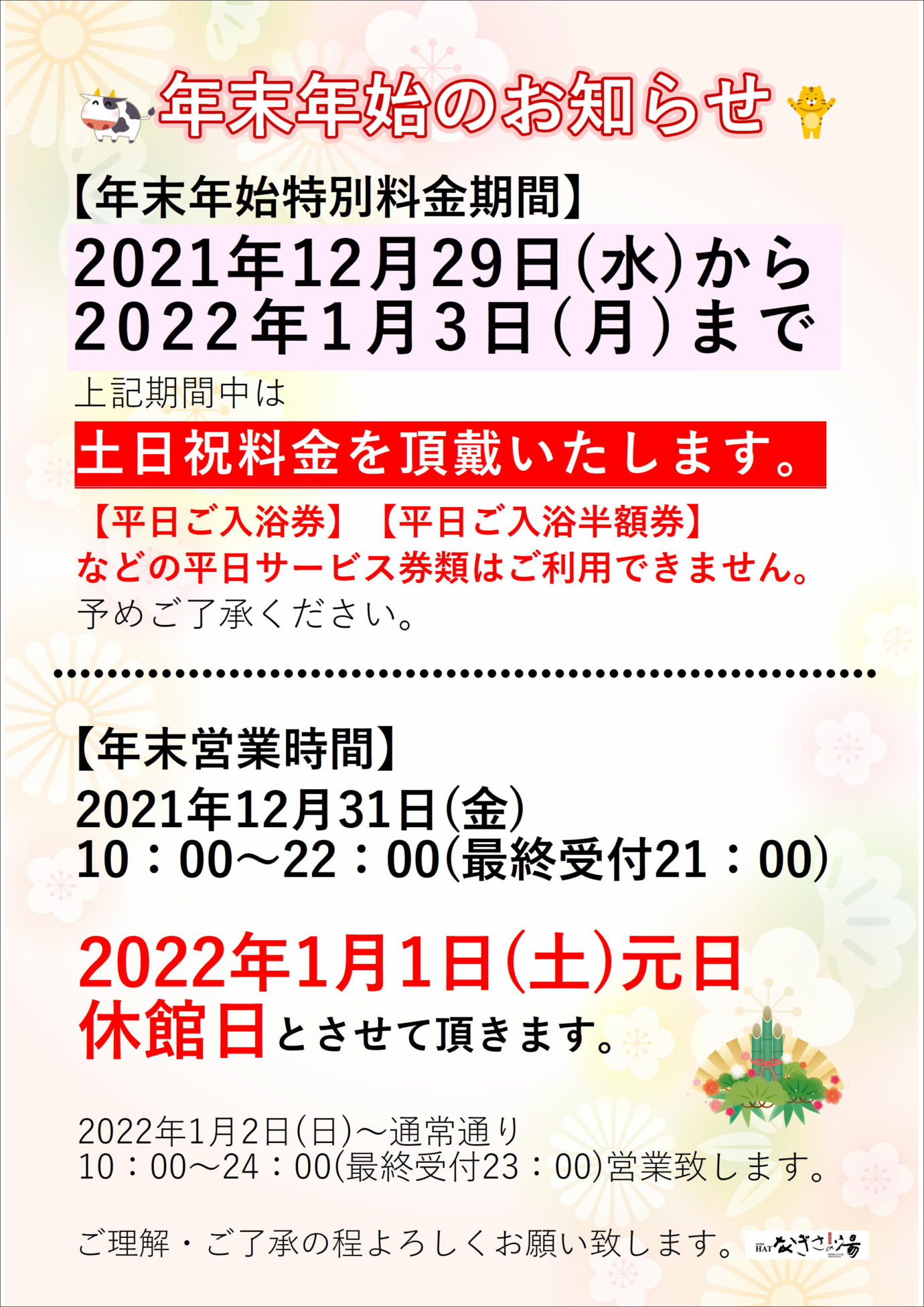 2021年 年末年始のおしらせ